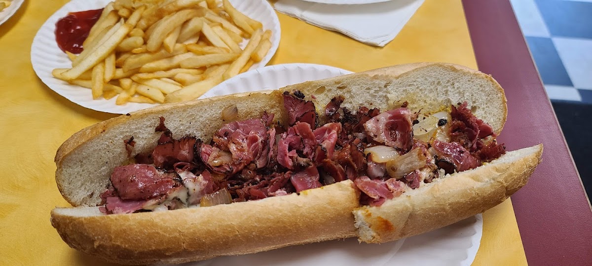 We’re from the UK and quite literally never tasted or experienced anything like this place. We ordered the pastrami sub, sausage egg and cheese bagel and a cream cheese bagel. Just get everything on the menu though. The people are so hard working and so friendly, and the food was incredible - so much value for money!! If the shop is full for eat-in, then take it to go and take a short walk to the public garden. They also show the prem games! This was just so good. Thank you so much.